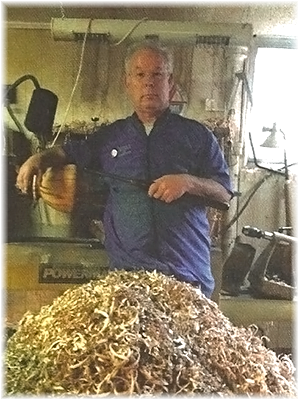 Sam has been turning wood since 1994. He began shortly after getting married and moving back to his hometown in 1993 (Sam says "my wife made it clear I could not date anymore"). His first project was walnut chalices that are now used during Lent (Trinity Episcopal). The chalices were turned on an early Shopsmith and the experience had him hooked.