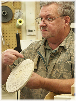 Born in Bowling Green Ohio and after high school went into the Air Force. I spent 27 1/2 years in the Air Force and full time Air National Guard were I worked in avionics on jet fighters repairing computers, radar and laser systems on the jets. I also received my altitude card so I could fly in the fighters. If one would break down somewhere I would fly in the back seat of a two seater and go fix it. After retiring my wife and I moved to Concord, NC were I went to work with a NASCAR team for 20 years and then retired again. I have been a woodworker and woodturner about all my life. I have always had a shop. I have been turning professional for about 12 years. My wife and I have two children, a boy and a girl and I am pleased to say that on May 18th we are going to celebrate our 50th anniversary. I have been an assistant instructor at both John C. Campbell and Arrowmont with Charles Farrow on hollow forms with funky finials.